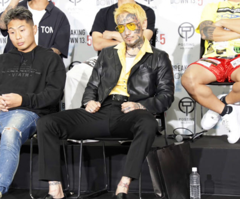イメチェン瓜田は金髪に黒のジャケットとズボン、黄色ののシャツ