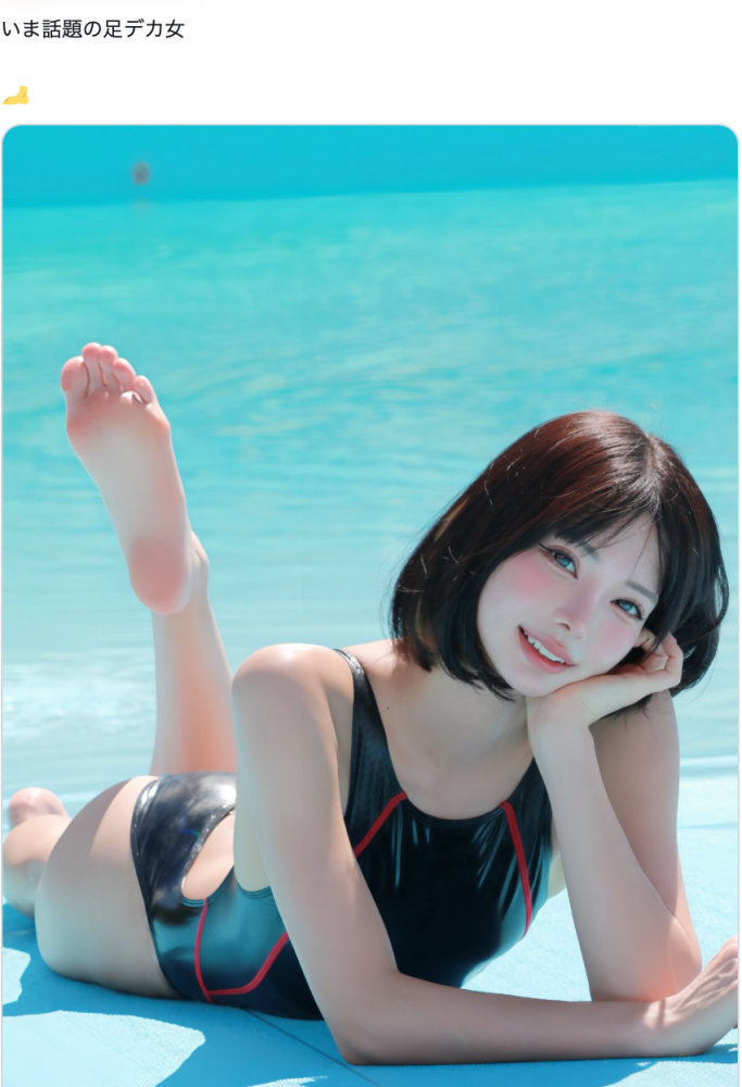 テカテカ競泳水着で“足デカ女”アピール(@0630_miyu_より)