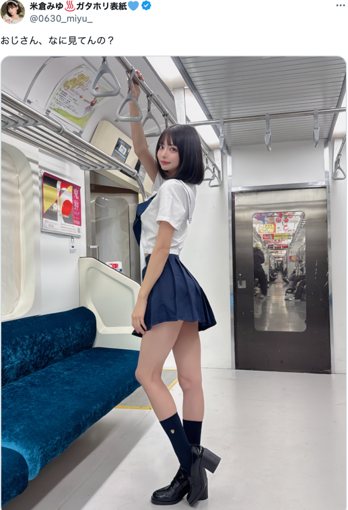 別角度からの米倉みゆミニスカセーラー服姿(@0630_miyu_より)