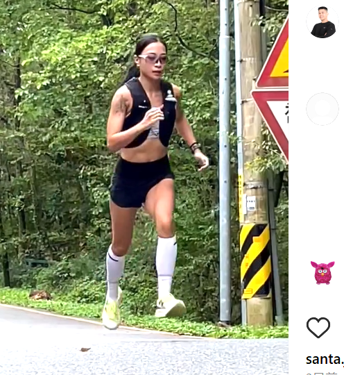 走り込みをするユリ。鍛えた太ももが躍動している(24年10月、@yuri__94)