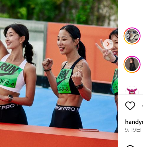 リレー競争に出場したユリ。腹筋がバキバキ(@yuri__94)