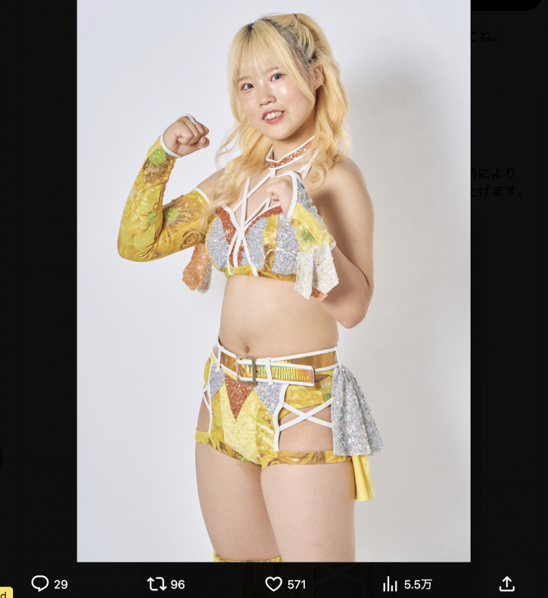 プロレス衣装姿のビクトリア弓月(@yuzuki_marigoldより)