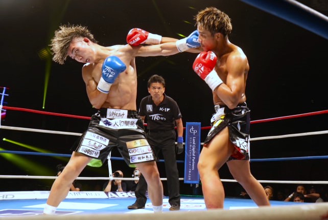軍司(右)は寺田戦で右クロスをヒットした(24年9月)