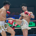 重森(左)は剛腕リアス(右)と対決する