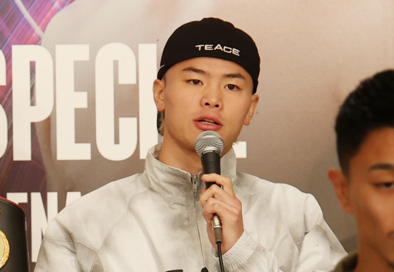 会見でコメントする那須川