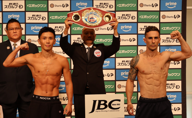 計量パスした岩田翔吉(左)とハイロ・ノリエガ