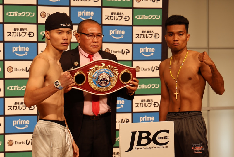那須川(左)とアシロ(右)がベルトをかけて対戦する