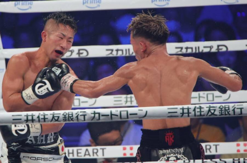 堤(右)のパンツに穴口一輝のロゴが入っている