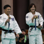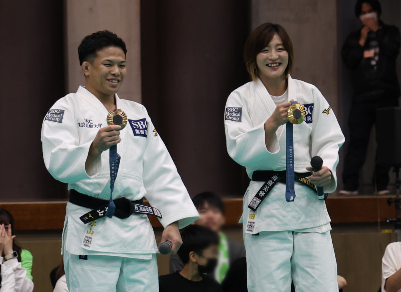 角田がパリ五輪の金メダル、永山は銅メダルを見せる