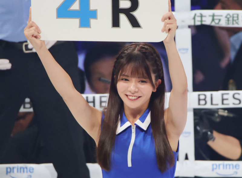 笑顔でボードを掲げる立華理莉