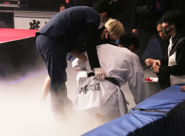 4、試合続行不可能になったテコンドー王者・江畑
