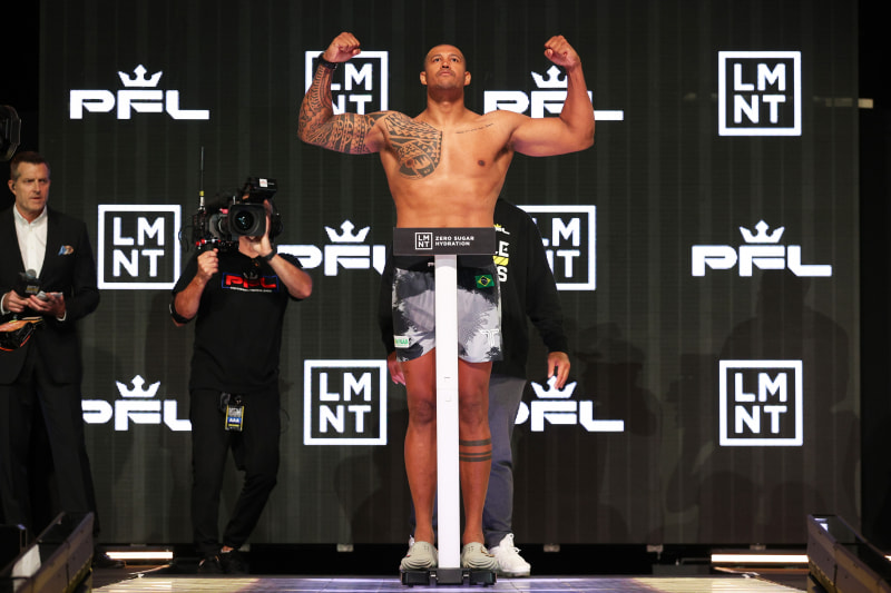 フェレイラ、仕上げた強靭ボディでマッスルポーズ!©️PFL