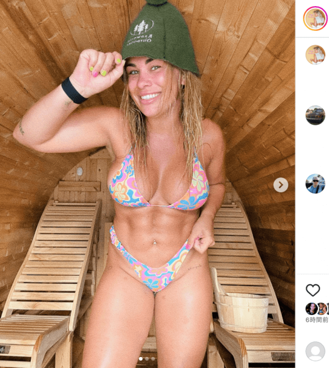 ビキニ姿でサウナ、割れた腹筋@paigevanzantより