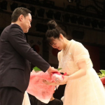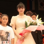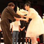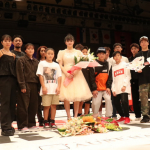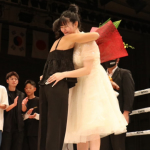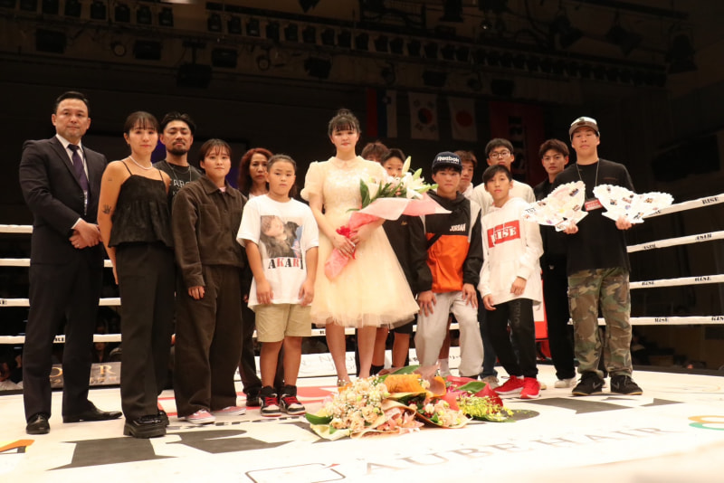 引退式でキッズクラスの生徒たちや師匠・神村エリカらに囲まれるAKARI(中央)