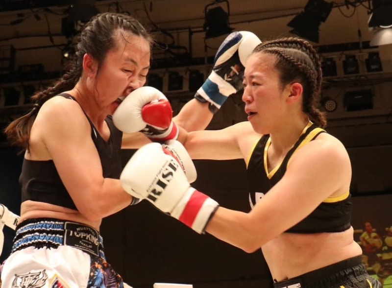 小林の強烈なパンチがヒットし、相手の顔が歪む