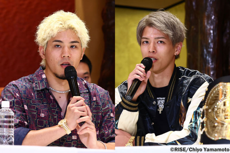 GLORY RISEフェザー級GP一回戦に出場する原口健飛(左)と白鳥大珠(写真は9月の会見時)