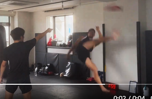 この蹴りが急所に当たれば、倒れることだろう(@__70nao70)