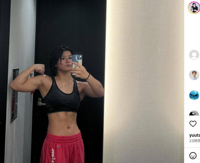 マッスルポーズを決める山岡聖怜(@yamaoka.seri.1113)
