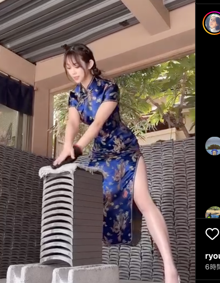 堀江聖夏、チャイナドレスで瓦割り15枚に挑戦@mina_horieより