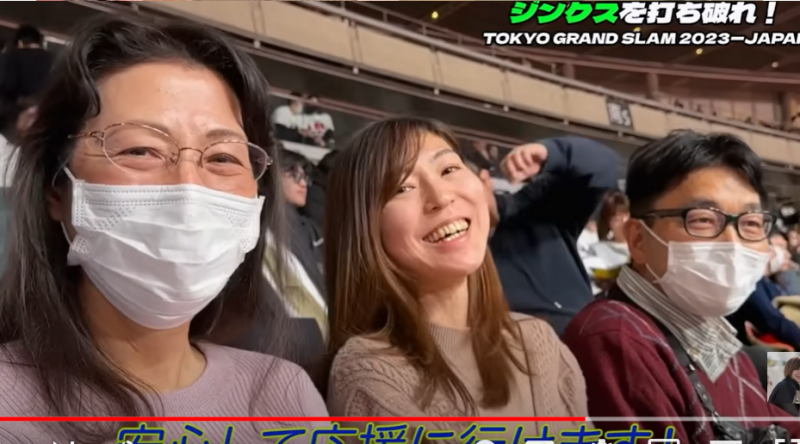 家族で国際大会を応援(中央、『角田夏実の部屋』YouTubeチャンネル)