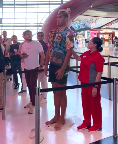 エドポロキングが、ジェットコースターの搭乗待ちで身長測定を受ける(@sdarvish56)