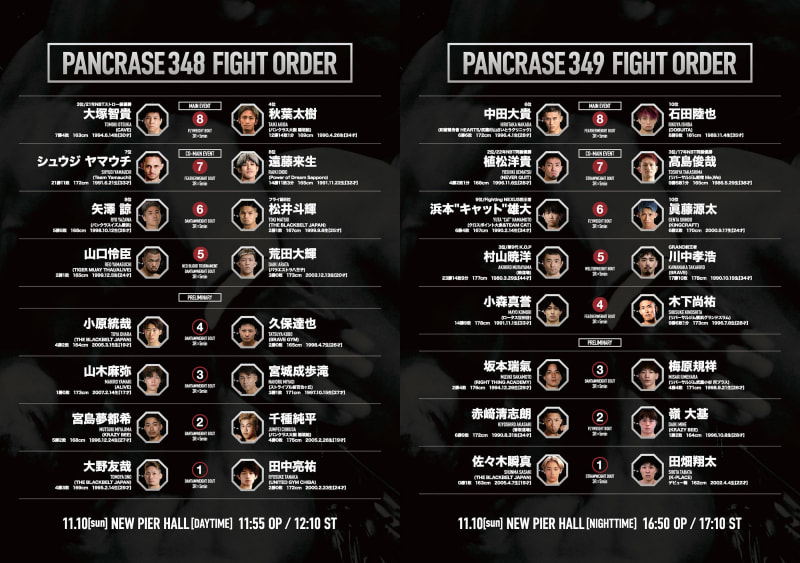 『PANCRASE 348』『PANCRASE 349』の試合順(※348の第1試合は中止)