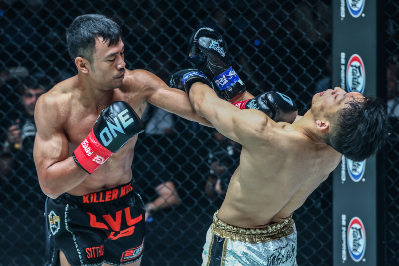 前戦、シッティチャイの左で野杁の顔が跳ね上がる©️ONE