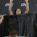 黒幕の中で急いで服を着て幕から出る(c)ONE
