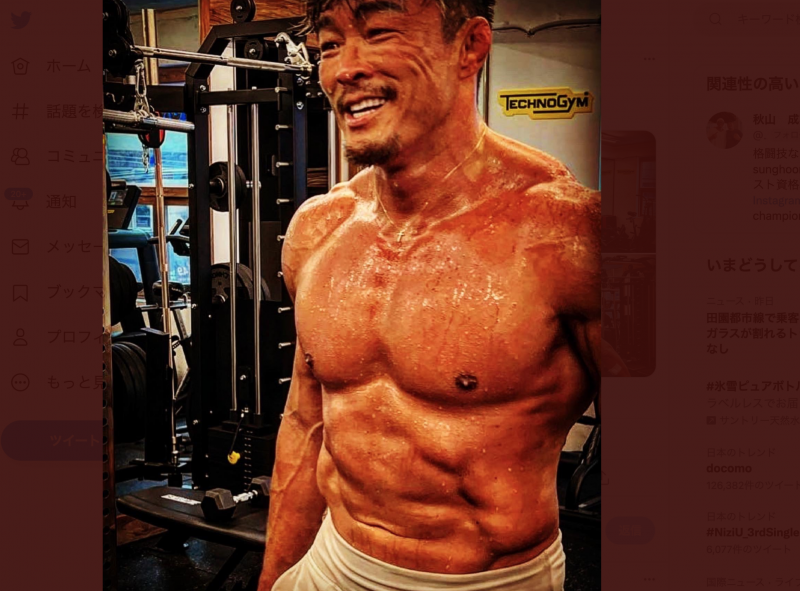 昨年10月、トレーニング後の秋山の前からのボディ@akiyamachooより