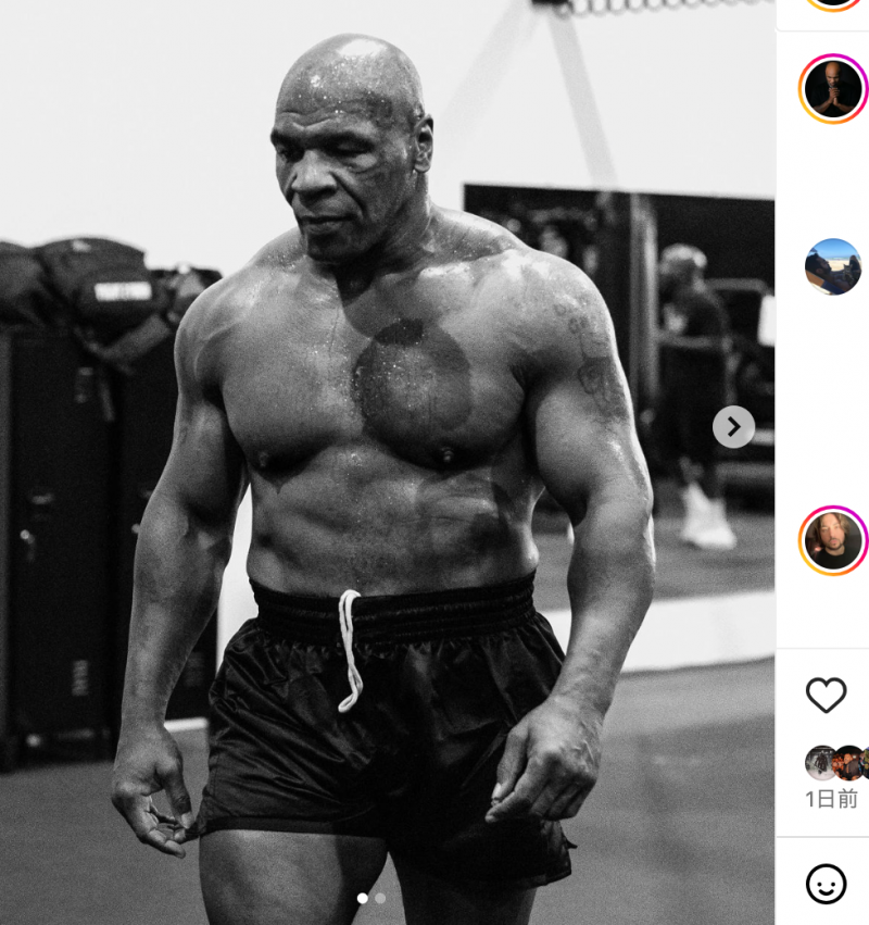 試合直前!現在のタイソンの絞ったゴツゴツ肉体美!@MikeTysonより