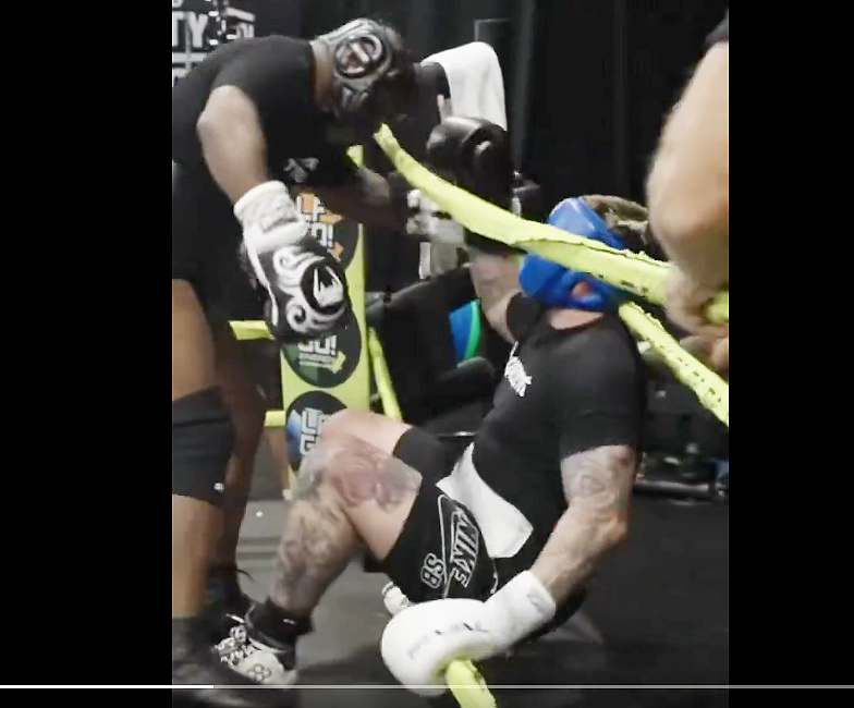 ダウン相手がロープ外に飛び出す寸前@MikeTysonより