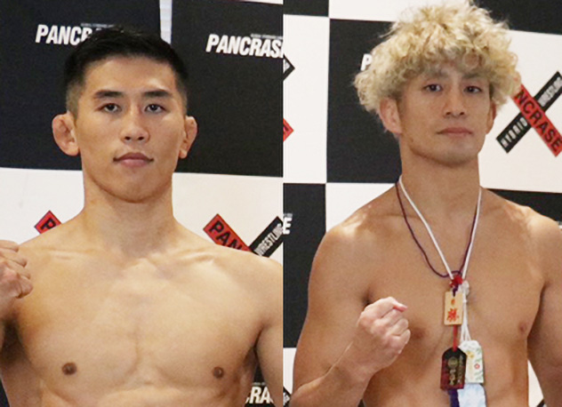夜の部のメインイベントで対戦する中田(左)と石田(右)