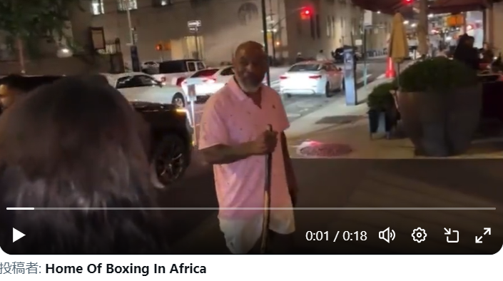 22年、杖を持ち街中を歩くタイソン @KboXtv