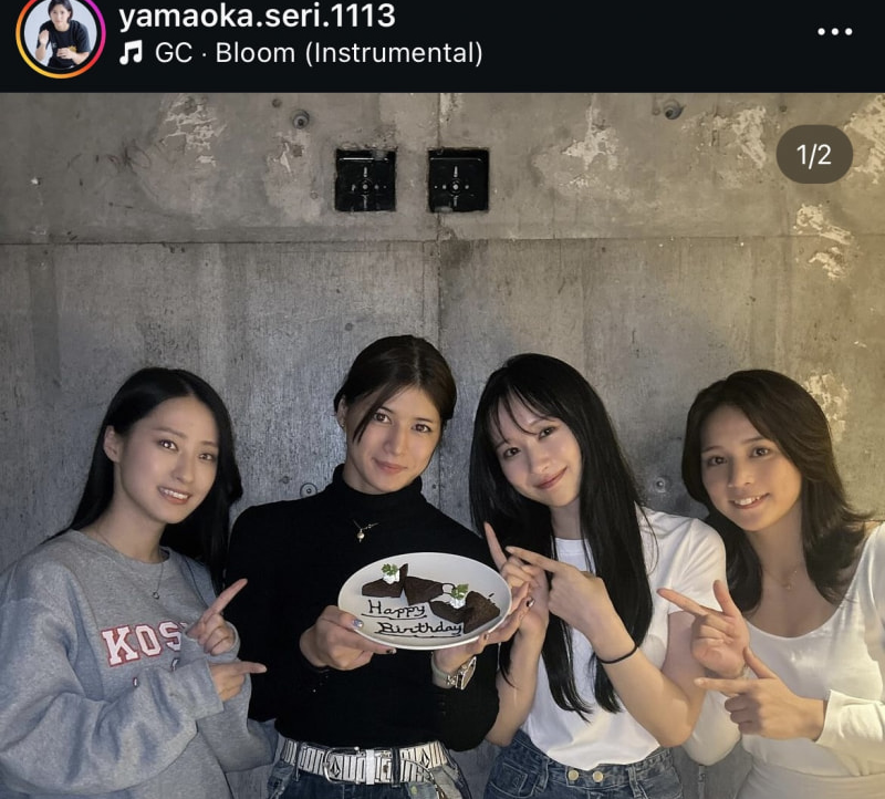 山岡聖怜と姉の雅弥(右)、友人ら@yamaoka.seri.1113より