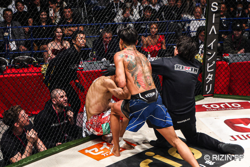 芦澤がパンチで追撃!