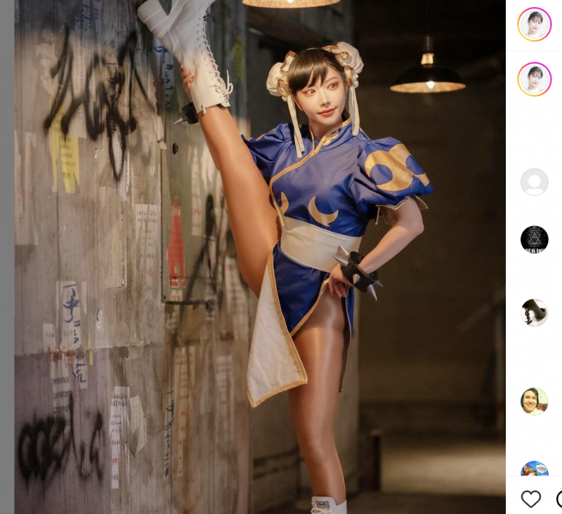 春麗のコスプレで横蹴りを繰り出す西井(@atata_dayo)