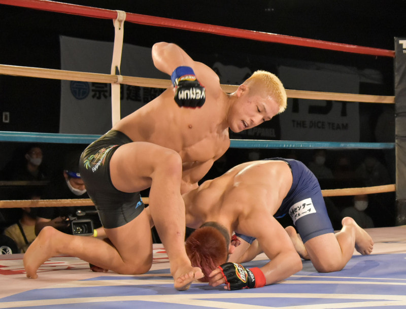 強烈なパウンドを打つ平田(写真はDEEP参戦時)
