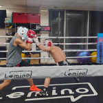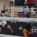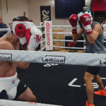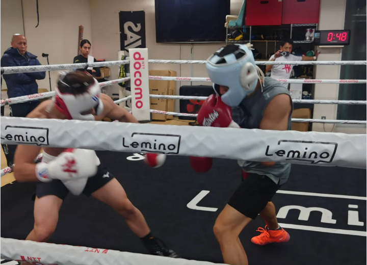 ラミド(右)とスパーリングを行う井上(左)(大橋ジム提供)