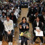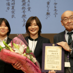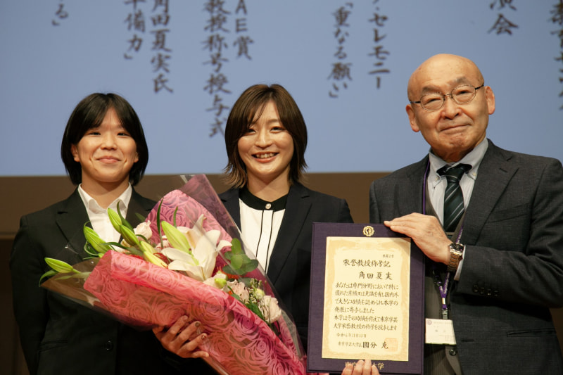 東京学芸大学の栄誉教授の称号を授与された角田(中央)