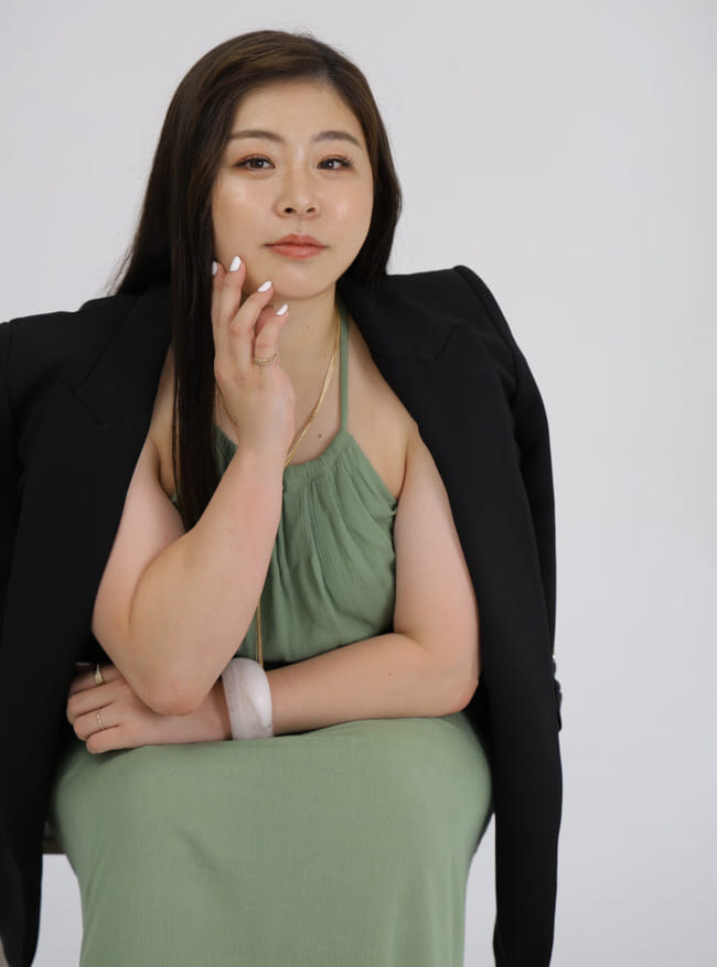 植草のボディ。バスト 110cm、ウエスト 97cm、ヒップ 115cm。身長 168cm 体重 85kg(本人提供)