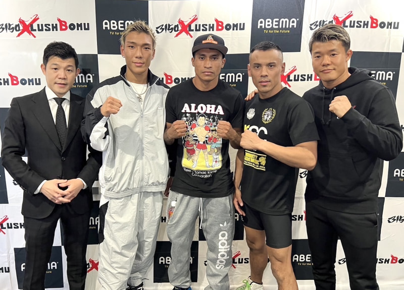 (左から)亀田興毅ファウンダー、亀田京之介、レネ・カリスト・ビビアーノ、健文トーレス、亀田和毅
