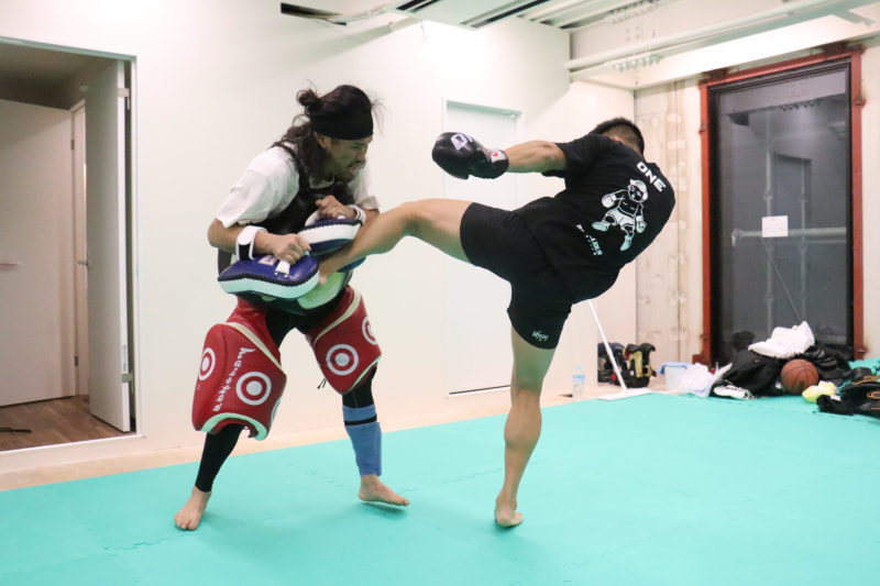 野杁の強烈なミドル!流石の渡辺トレーナーも顔も歪む