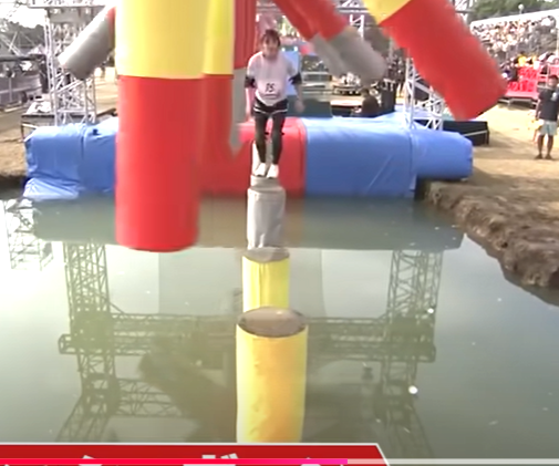回転するバーをかわして支柱に飛び乗る角田(『SASUKE Ninja Warrior【TBS公式】SASUKEチャンネル』)