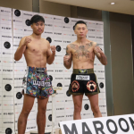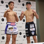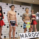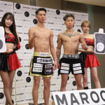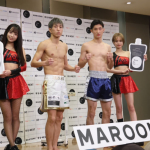 無事に計量をクリアしたKiho(左から2番目)とMIYU(右から2番目)