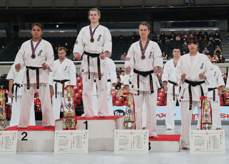 エリザベータが初優勝、2位宮本神(左)、3位クセニア(ロシア)4位小城みなみ (千葉北支部)