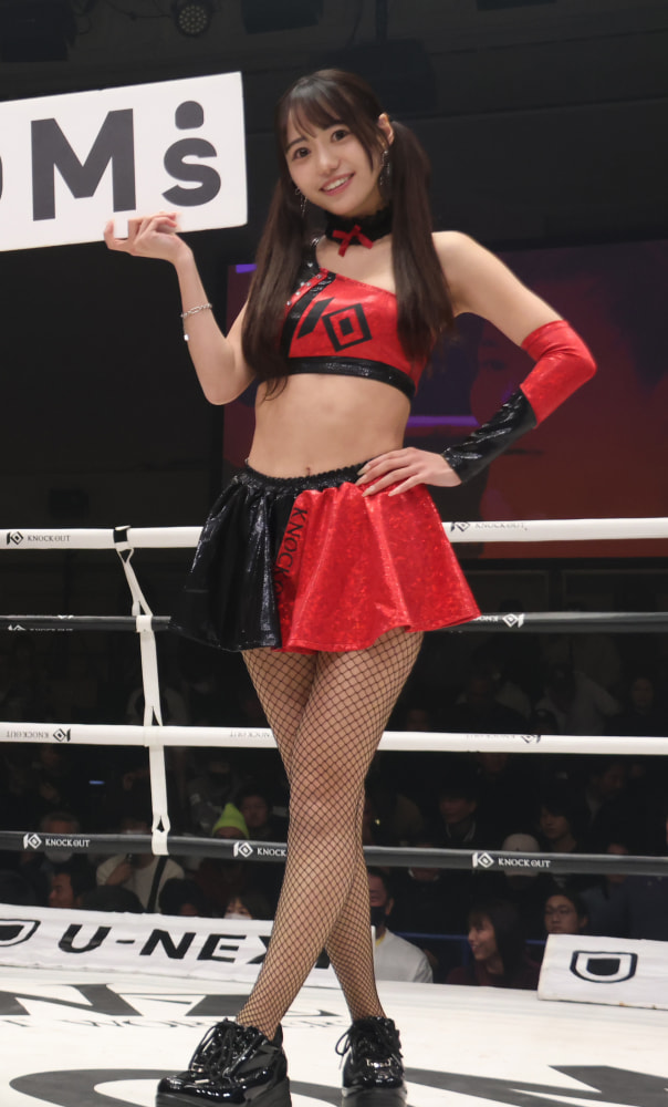 弓川いち華、ミニの衣装に網タイツでラウンドガールに