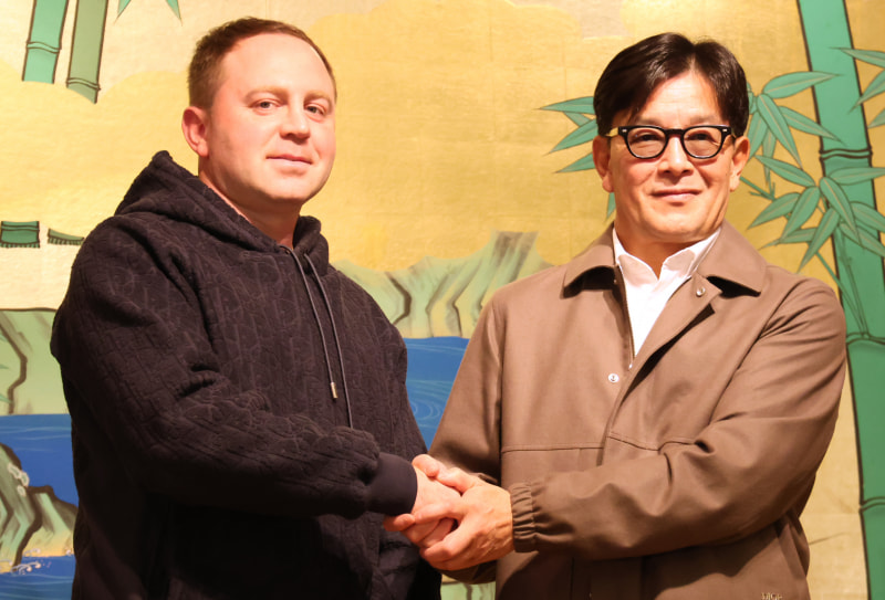 榊原CEO(右)が、FanmioのサロメンCEOとがっちり握手