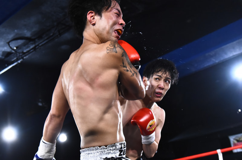 右ストレートを見舞う切詰大貴(右)