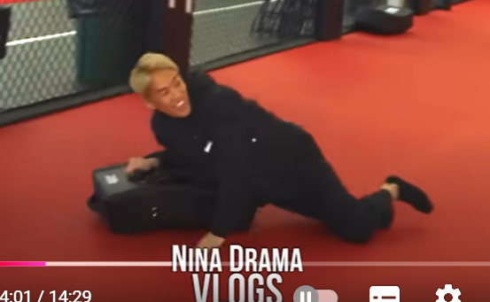 吹っ飛ぶ朝倉(『Nina Drama』YouTubeチャンネル)