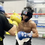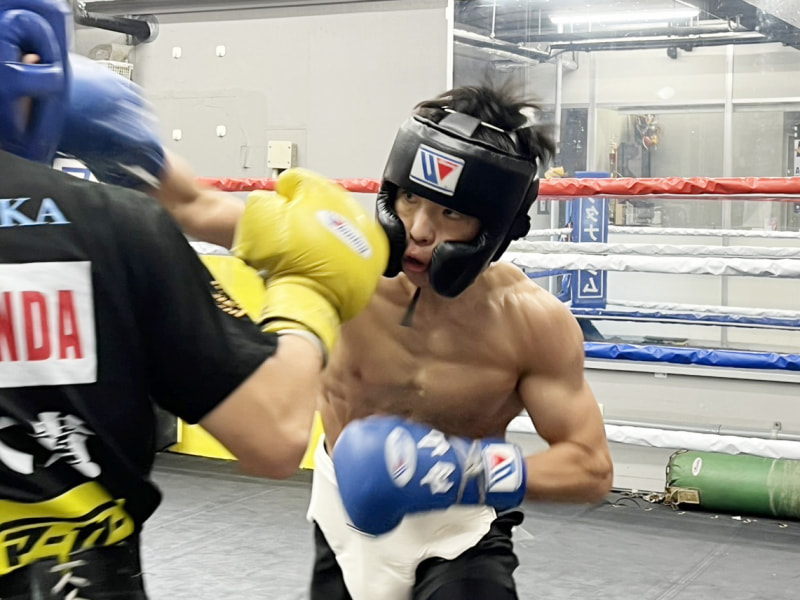 スパーリングを披露する横山